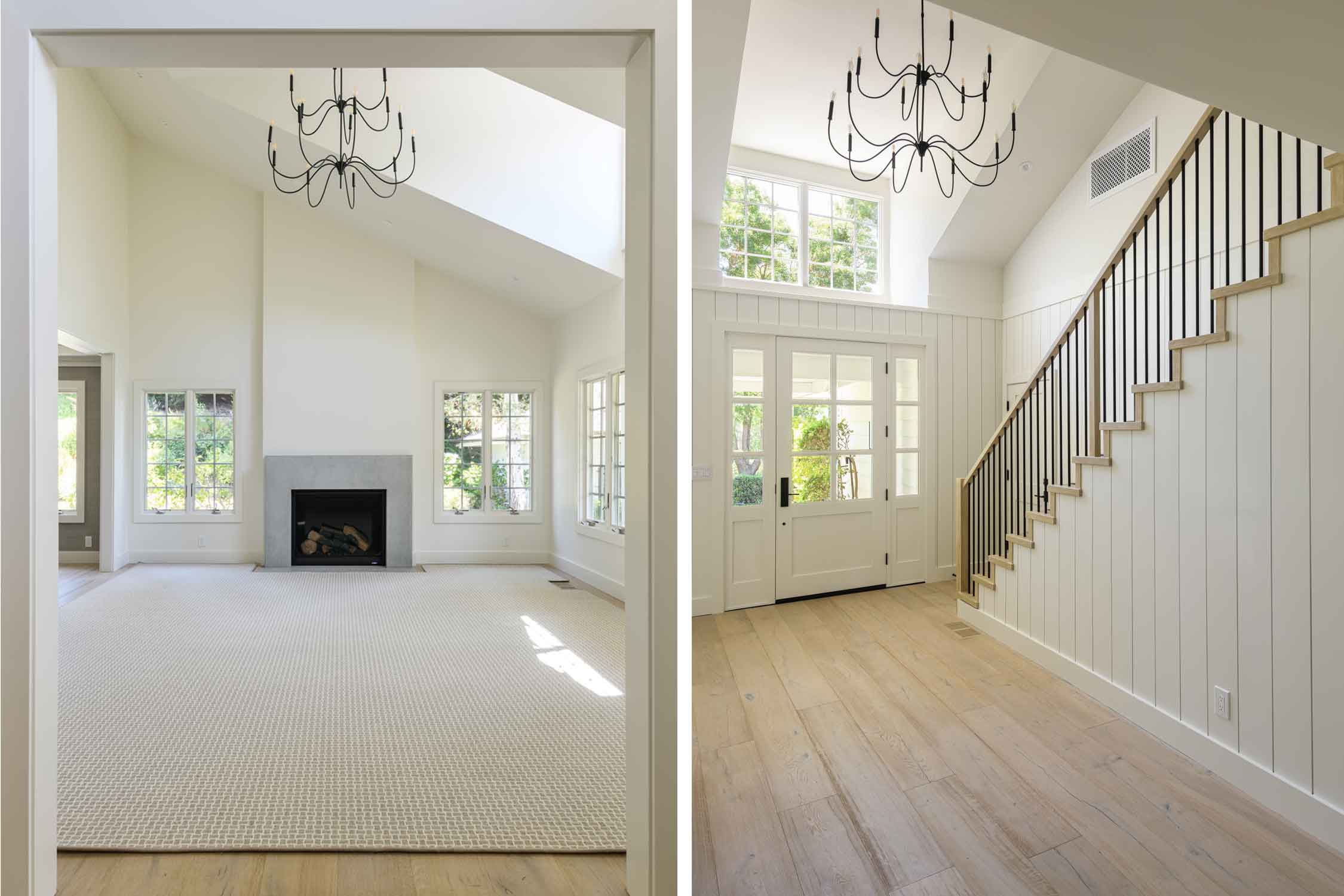 Our project included removing traditional fireplaces and replacing them with linear, electric units to offer a sleek, modern look.  New flooring, baseboard, trim, paint, and lighting completed the look.