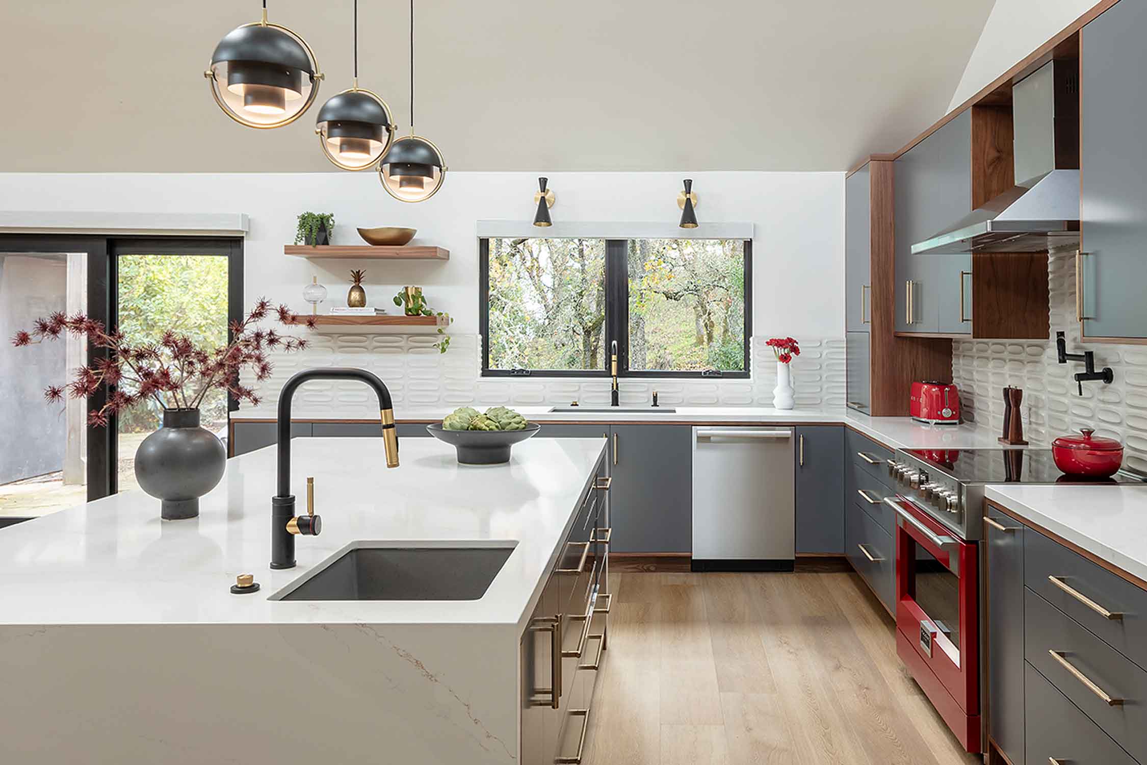 What do you do when your client has a very specific look in mind?  You get to work and give them exactly what they pictured, as in this mid-century modern kitchen.