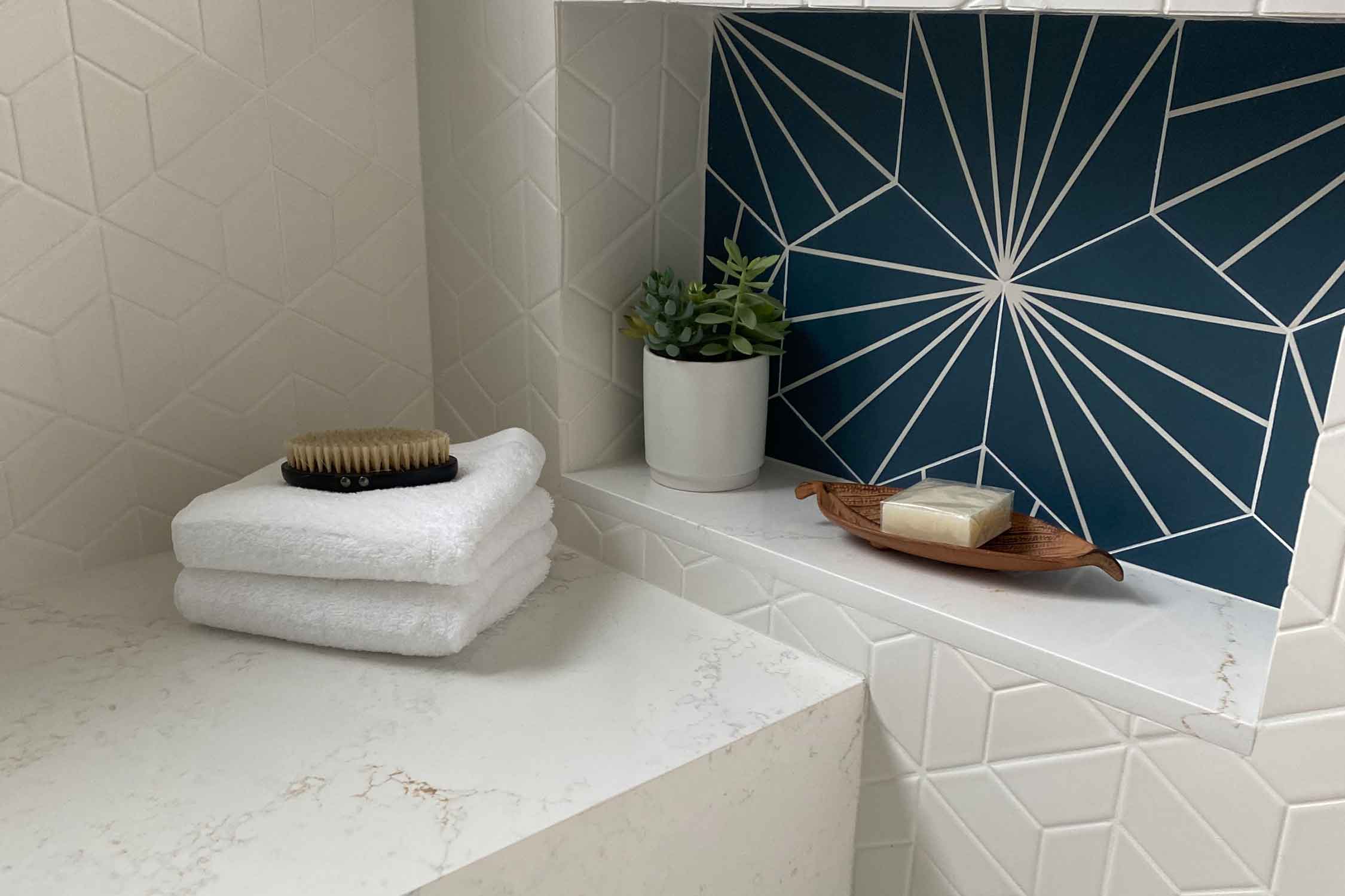 Keeping with the mid-century modern theme, the clients were invested in getting every detail right, as with this geometric tile pattern on the floor.